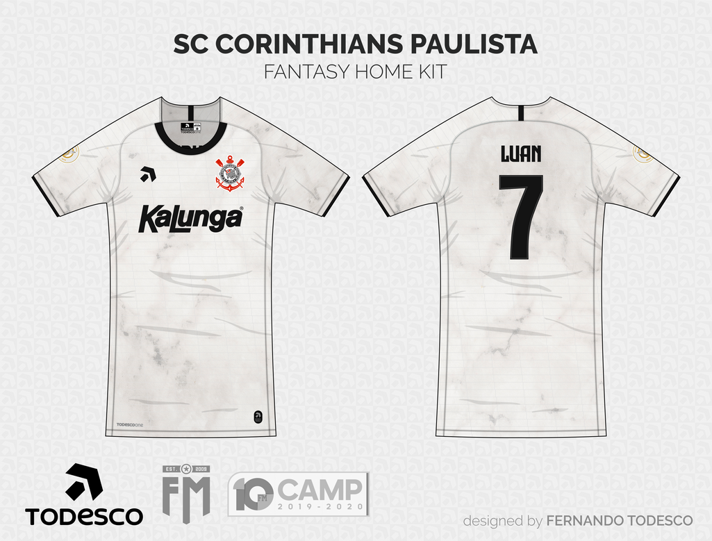 Home: A ideia era criar uma referência a Arena Corinthians, um dos maiores motivos de orgulho do Corinthians. Para isso, trouxemos o formato das peças de mármore da fachada para a camisa, além de uma textura marmorizada, que também significa uma camisa após a "batalha do campo", simbolizando a entrega do time dentro das 4 linhas.